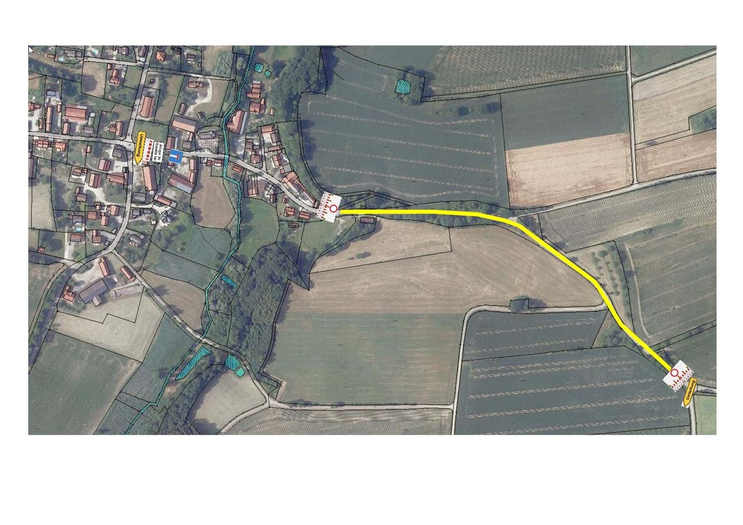 Die Anlieger „Am Mühlberg" können selbstverständlich die Straße bis zur Sperrung am Ortsausgang befahren.